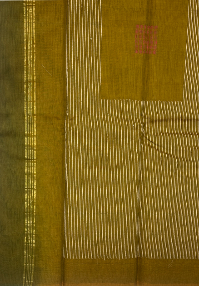 ARMY GREEN PURE HANDLOOM COTTON SILK SAREE