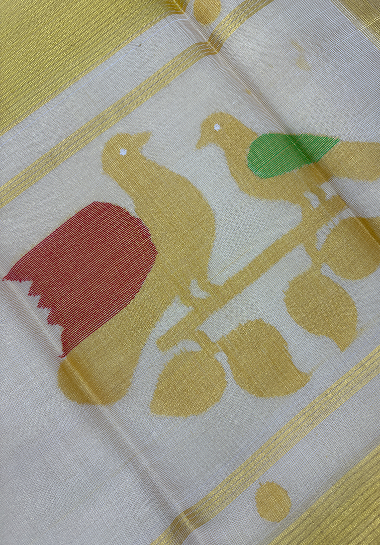 BIRD MOTIF PURE HANDLOOM KASAVU SAREE