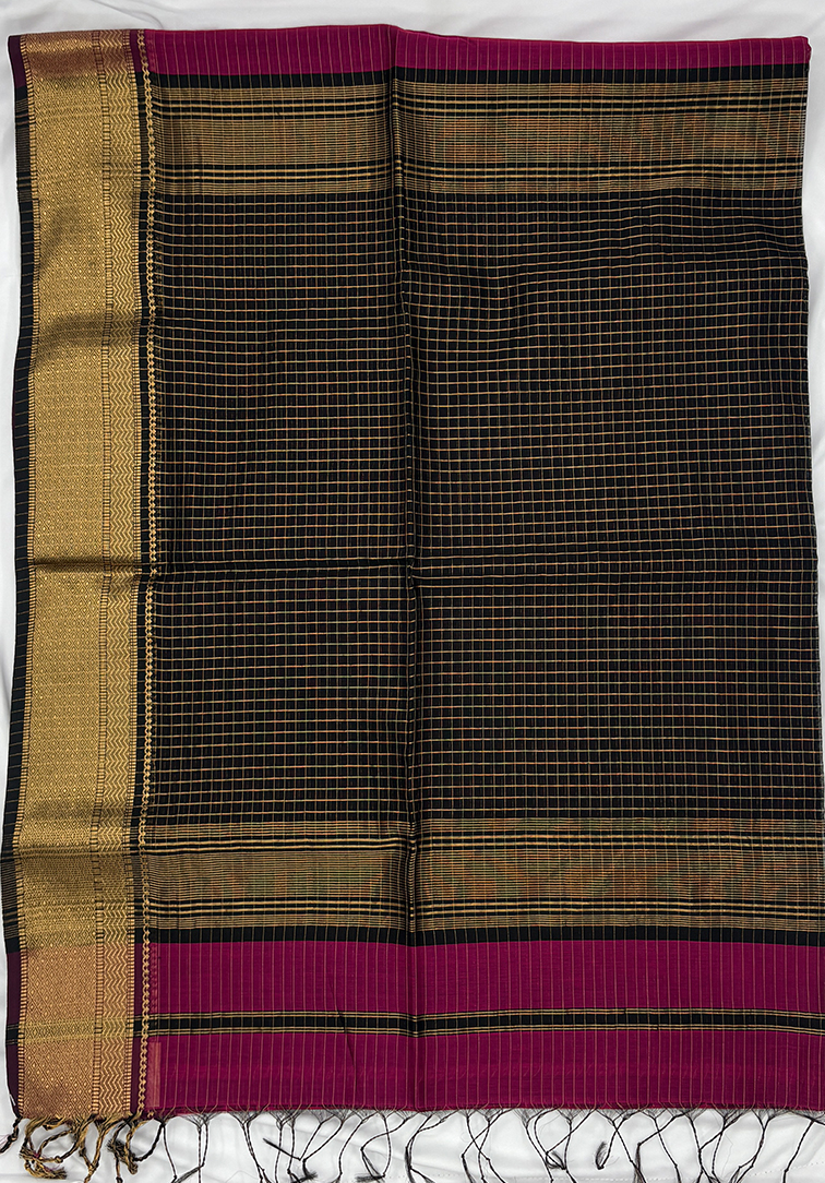 DARK MAGANTA PURE MAHESHWARI HANDLOOM SAREE