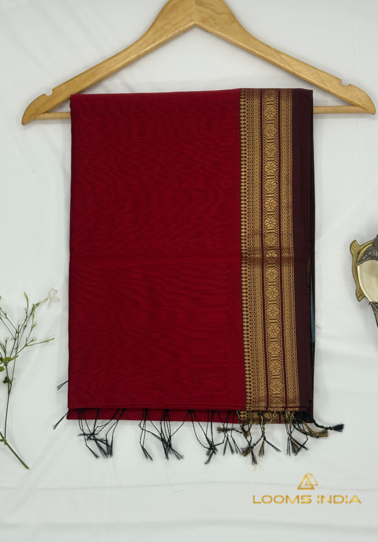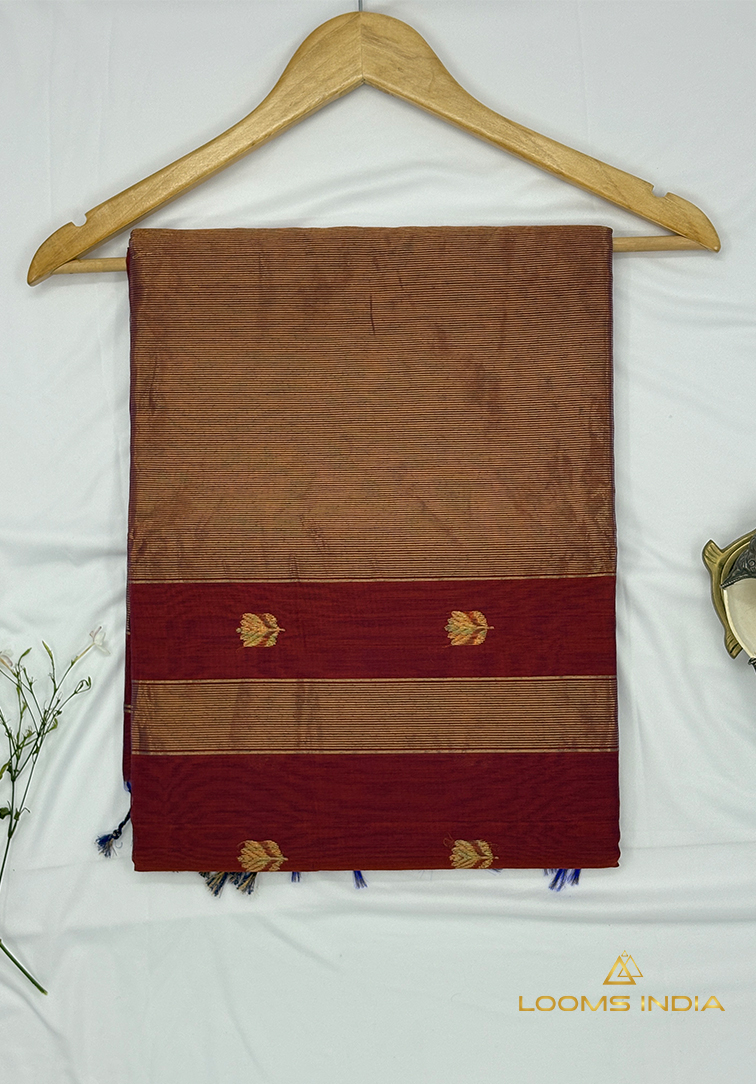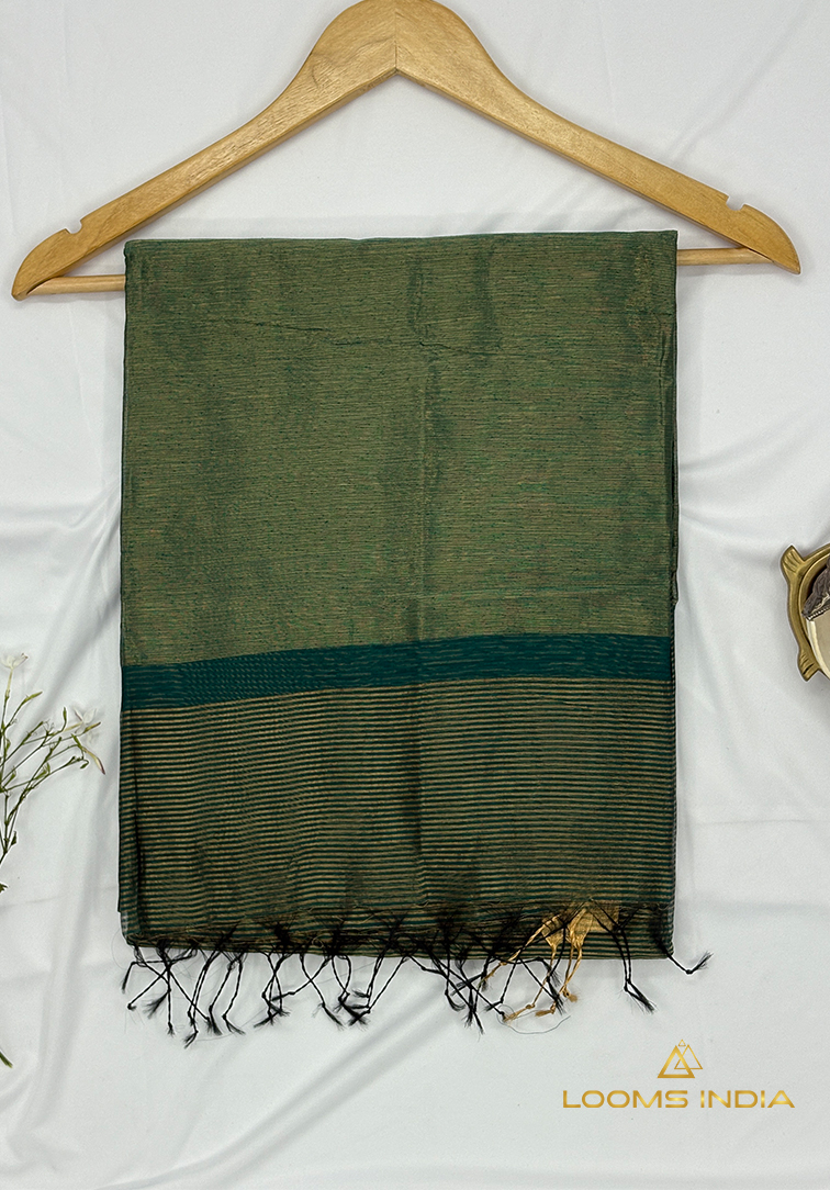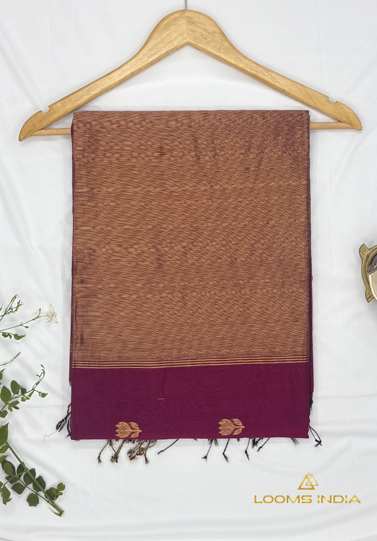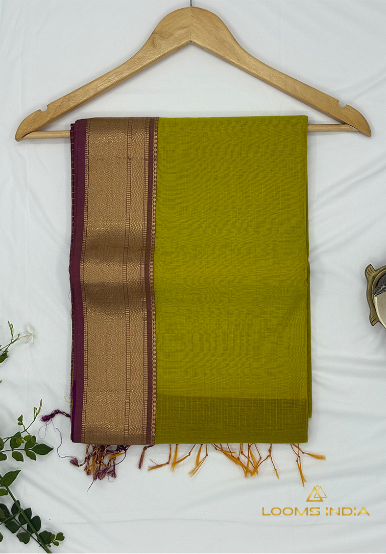 This elegant handloom saree is crafted in a soft light golden yellow shade, exuding warmth, freshness, and timeless grace. The body is delicately woven with simple zari lines running all over, creating a subtle shimmer that enhances the saree without overpowering its minimal aesthetic. A neatly finished small zari border adds definition and balance, perfectly complementing the gentle glow of the body colour. The saree is paired with a plain matching blouse, thoughtfully finished with a simple zari border for a refined and harmonious look. Lightweight and comfortable, this saree drapes beautifully, making it ideal for office wear, daytime celebrations, poojas, and intimate festive gatherings. A perfect blend of simplicity and tradition, this saree is a timeless addition for those who value understated elegance and authentic handloom craftsmanship.