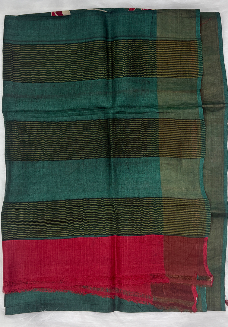 GREEN PURE HANDLOOM TUSSAR SILK SAREE