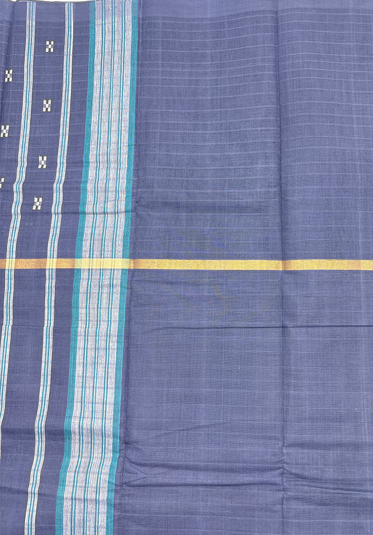 Elevate your everyday elegance with this refined **pure handloom cotton saree**, designed with subtle sophistication. The body comes in a soft light grey tone, offering a clean and graceful base. Accentuating the saree is a broad contrast dark grey border, intricately detailed with elegant white thread designs and finished with delicate zari piping for a touch of understated luxury. The ensemble is completed with a contrast plain dark grey blouse, creating a perfectly balanced and timeless look. An ideal choice for office wear, casual occasions, and refined daily styling, this saree blends comfort, craftsmanship, and quiet elegance beautifully.