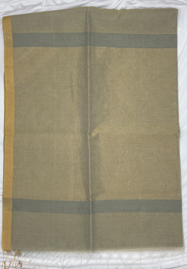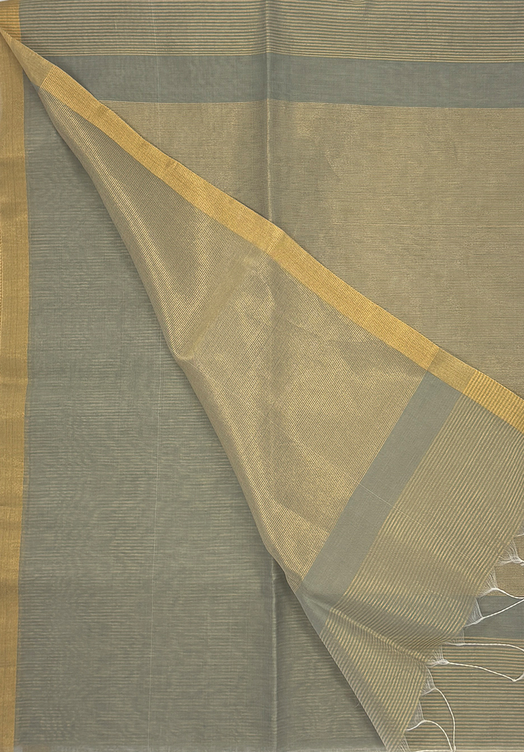 This elegant Maheshwari handloom saree is crafted in a soothing light grey shade, offering a refined and contemporary look. The body features simple zari lines woven all over, adding a subtle sheen and understated charm. A neat, small zari border frames the saree beautifully, enhancing its minimal elegance. Handwoven by skilled artisans of Maheshwar, this saree reflects the timeless beauty and lightweight comfort that Maheshwari weaves are known for. It is paired with a plain matching blouse, finished with a simple zari border for a coordinated and graceful finish. Perfect for office wear, formal gatherings, and daytime occasions, this Maheshwari handloom saree is a timeless choice for those who appreciate simplicity rooted in traditional craftsmanship.