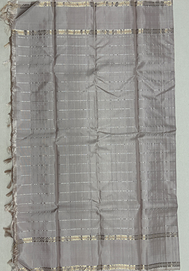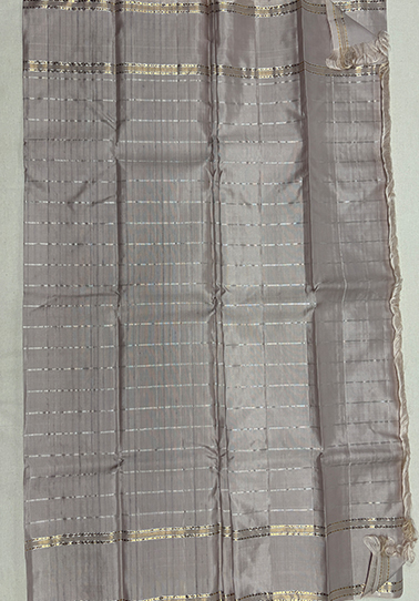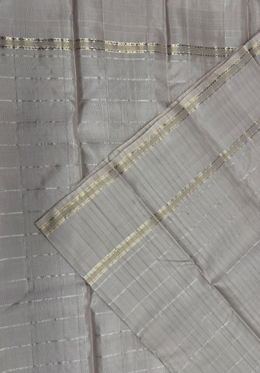 • Weave: Fine handwoven saree with subtle zari detailing • Body Colour: Off white • Design: All-over simple silver check pattern • Border: Simple golden and silver zari line border • Blouse: Self-colour blouse with all-over check design and simple border • Occasion: Suitable for festive wear, elegant day functions, traditional gatherings, and refined occasions