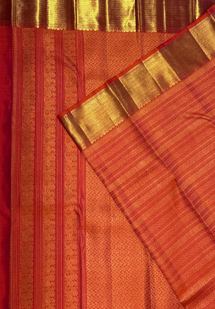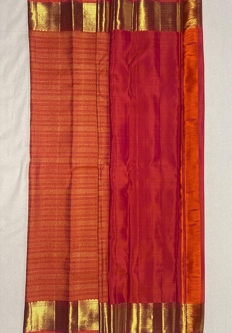 ORANGE PURE KANCHIPURAM HANDLOOM SILK SAREE