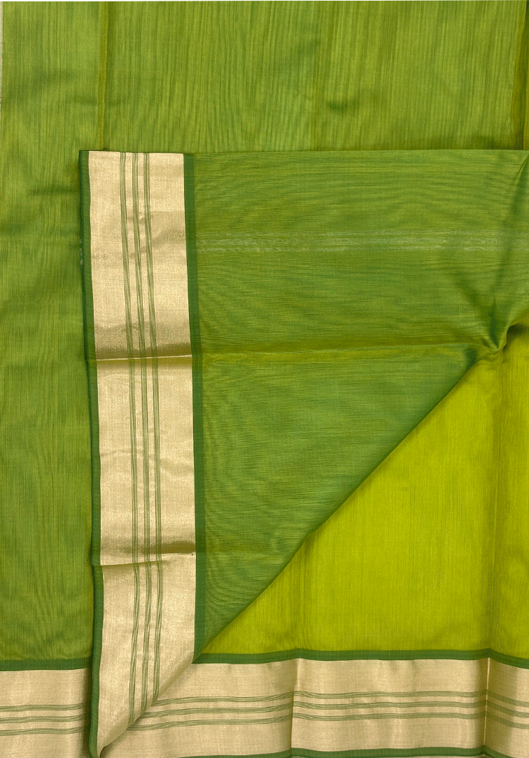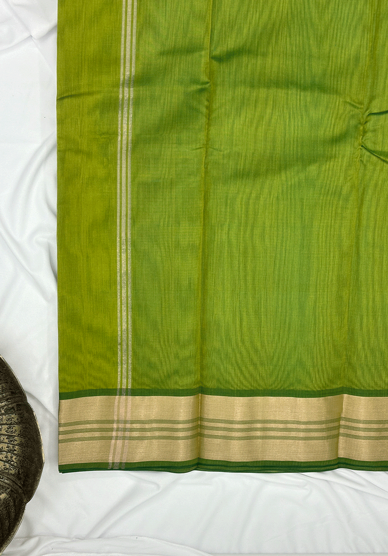PARROT GREEN PURE HANDLOOM COTTON SILK SAREE