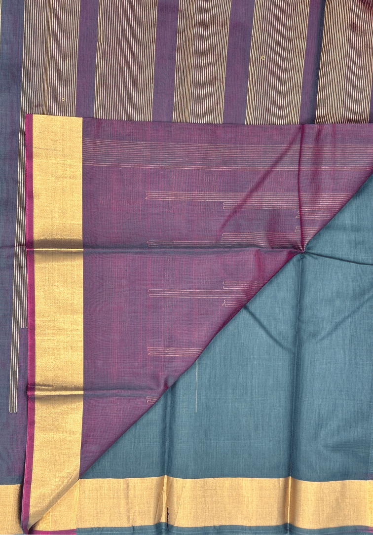 PEWTER BLUE PURE HANDLOOM COTTON SILK SAREE
