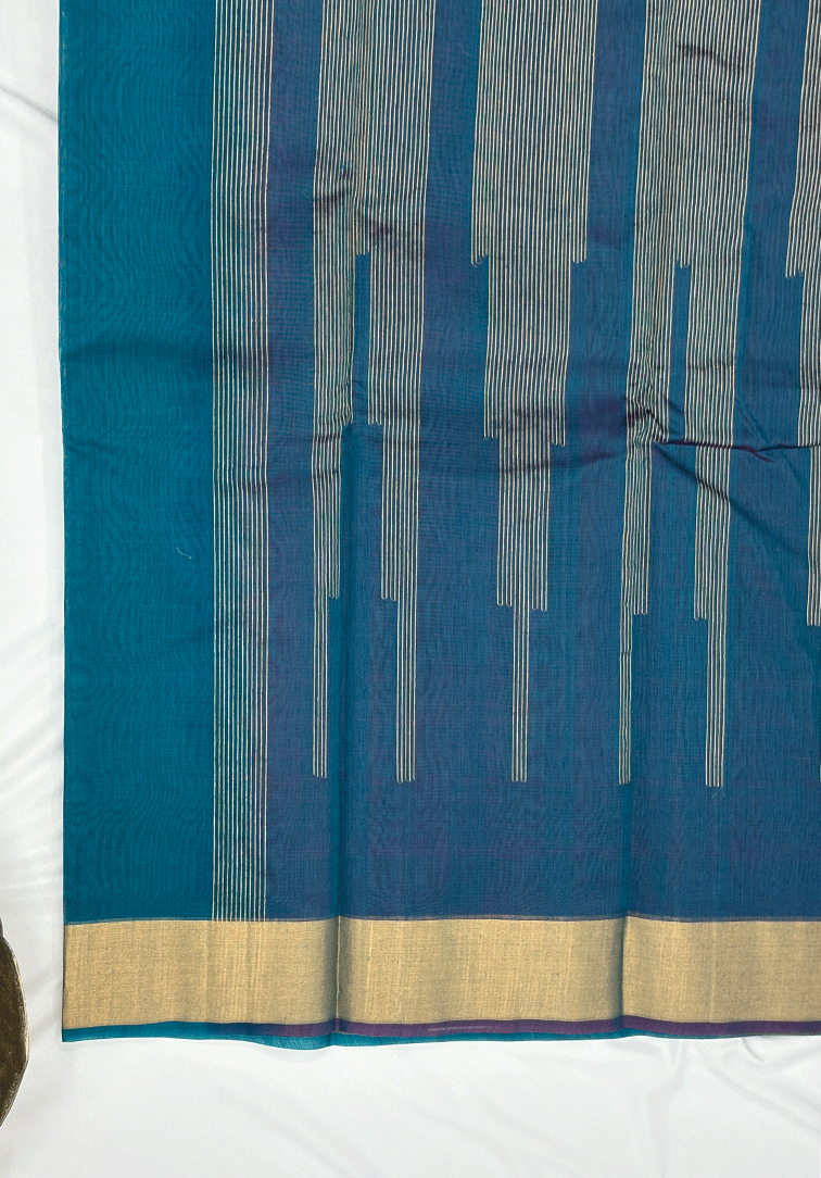 RAMA BLUE PURE HANDLOOM COTTON SILK SAREE
